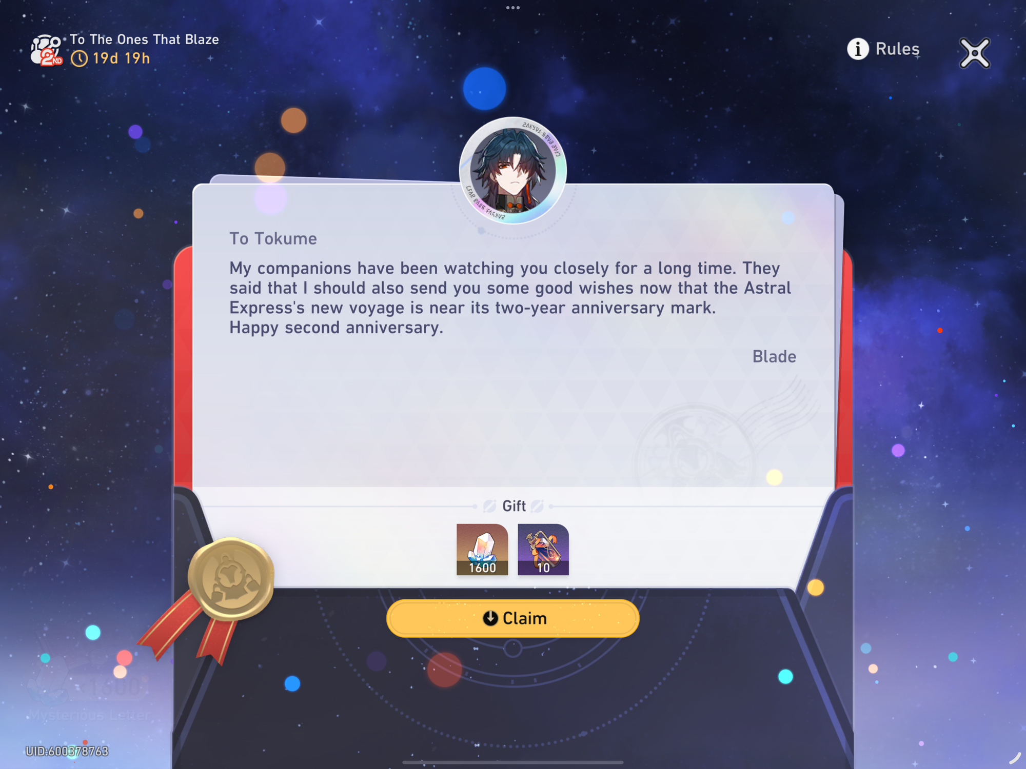 There was the anniversary event, got to have my letter from Blade. I think they finally understood people were unhappy with how messages from Blade weren't from him but from other Stellaron Hunters, so at least this one can be a direct one.