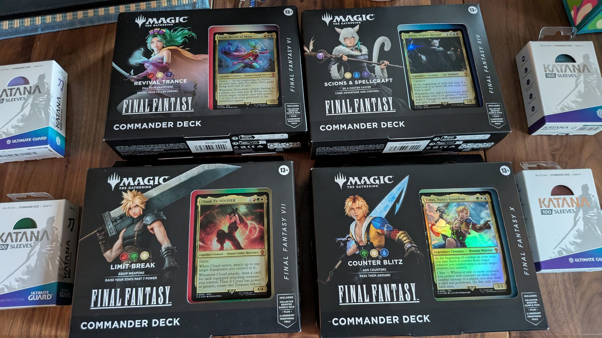 The start of June was a big highlight for me, it was the prerelease of the Final Fantasy x Magic: The Gathering cross over. I ended up getting all the regular commander decks and 3 whole booster boxes of cards. It's been a joy to see one of my favorite game series come to life in this card game.