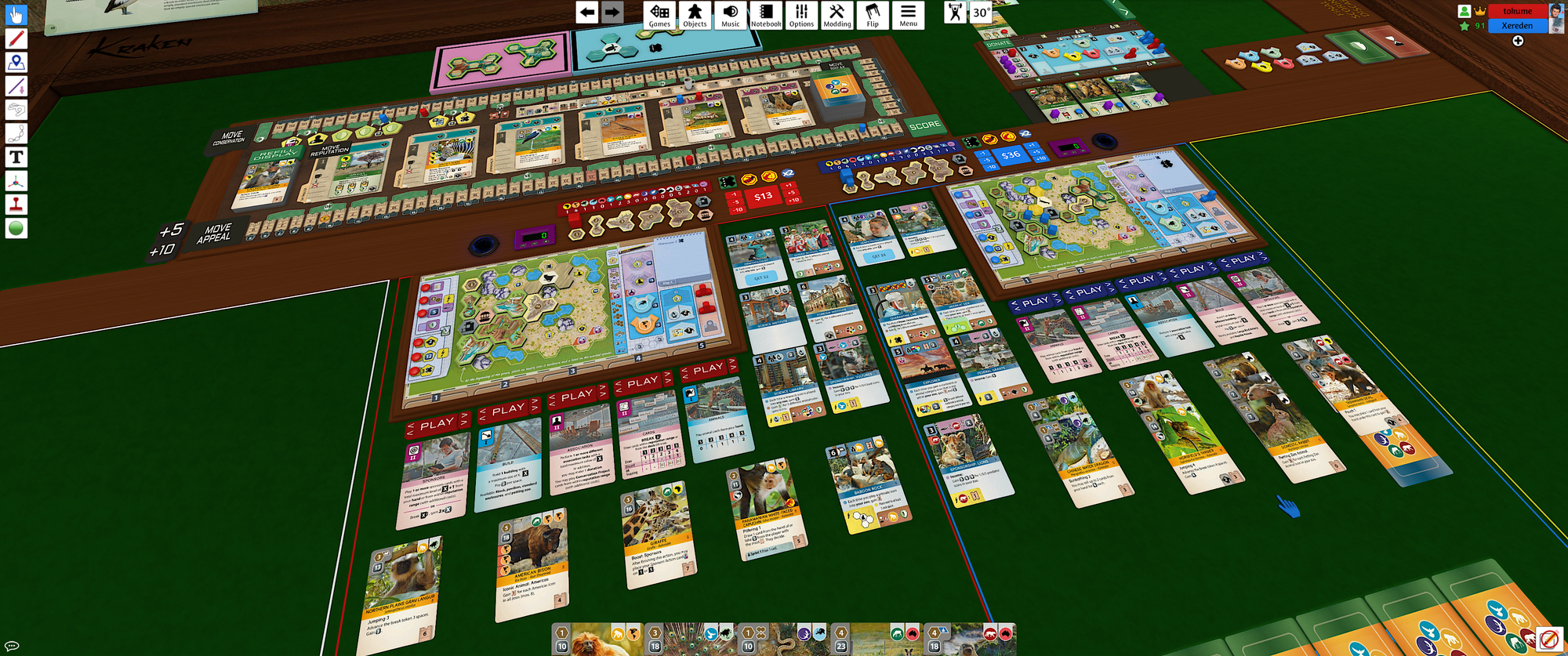 Taught a game with Xereden over Tabletop Simulator and we had an enjoyable time. Quite often I felt a little "behind" as Xereden would take certain goals as I was still trying to make moves for them, but that's just due to my focus being in trying other directions and trying to find my own path to victory. He just found his faster, and it worked well for him.