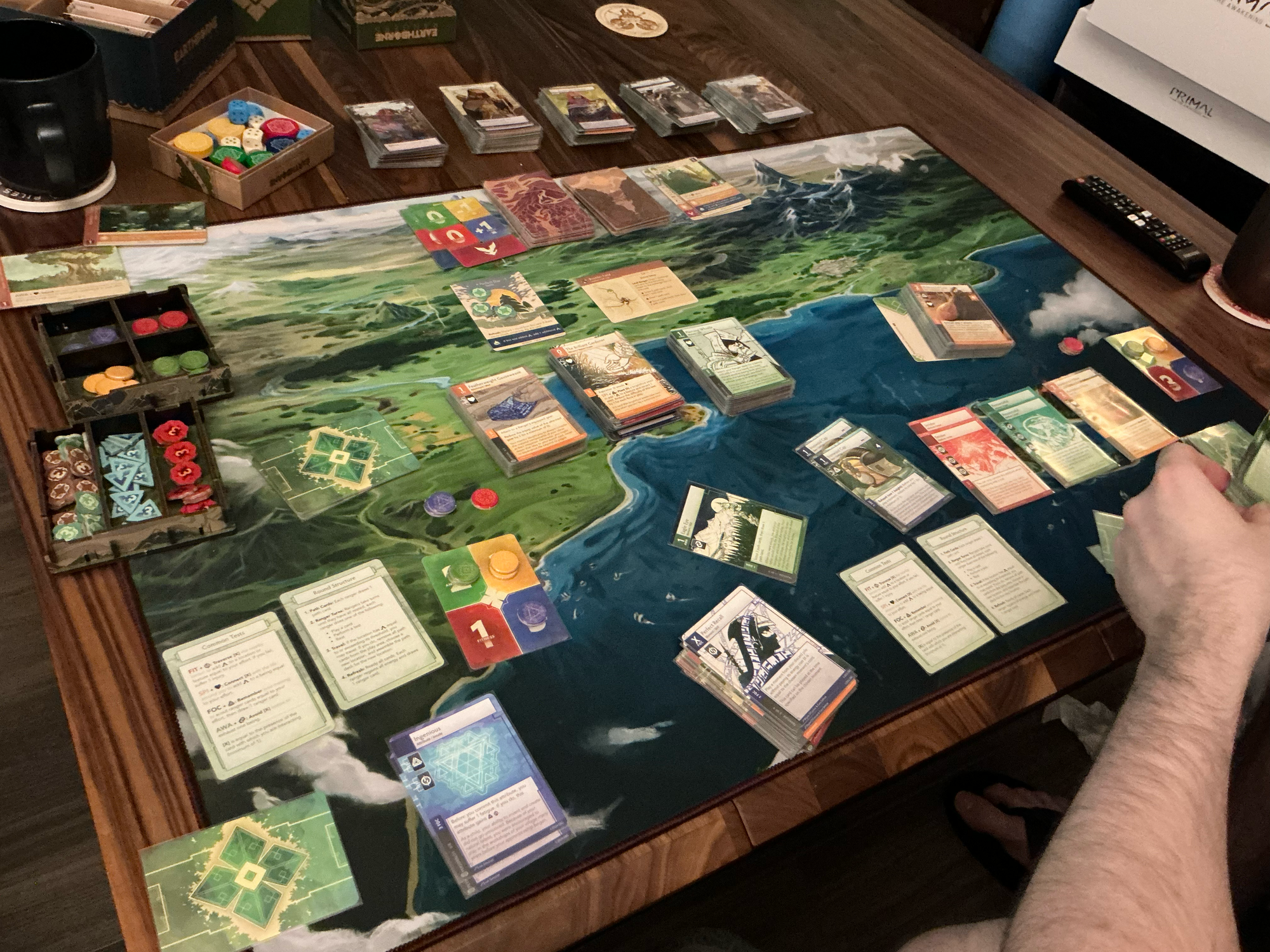 Which sounds up my alley: I like engine and tableau building games, this seems like it'd be the kind of playstyle that I want. And while, yes, overall, it is enjoyable to operate, I am at the complete mercy of luck of the draw for both the path and challenge decks. In some ways I feel like I picked the hardest option for my personal ranger deck. I'll still be going to complete my campaign with this Ranger, but. in subsequent plays I built out my deck with more thought and care.
