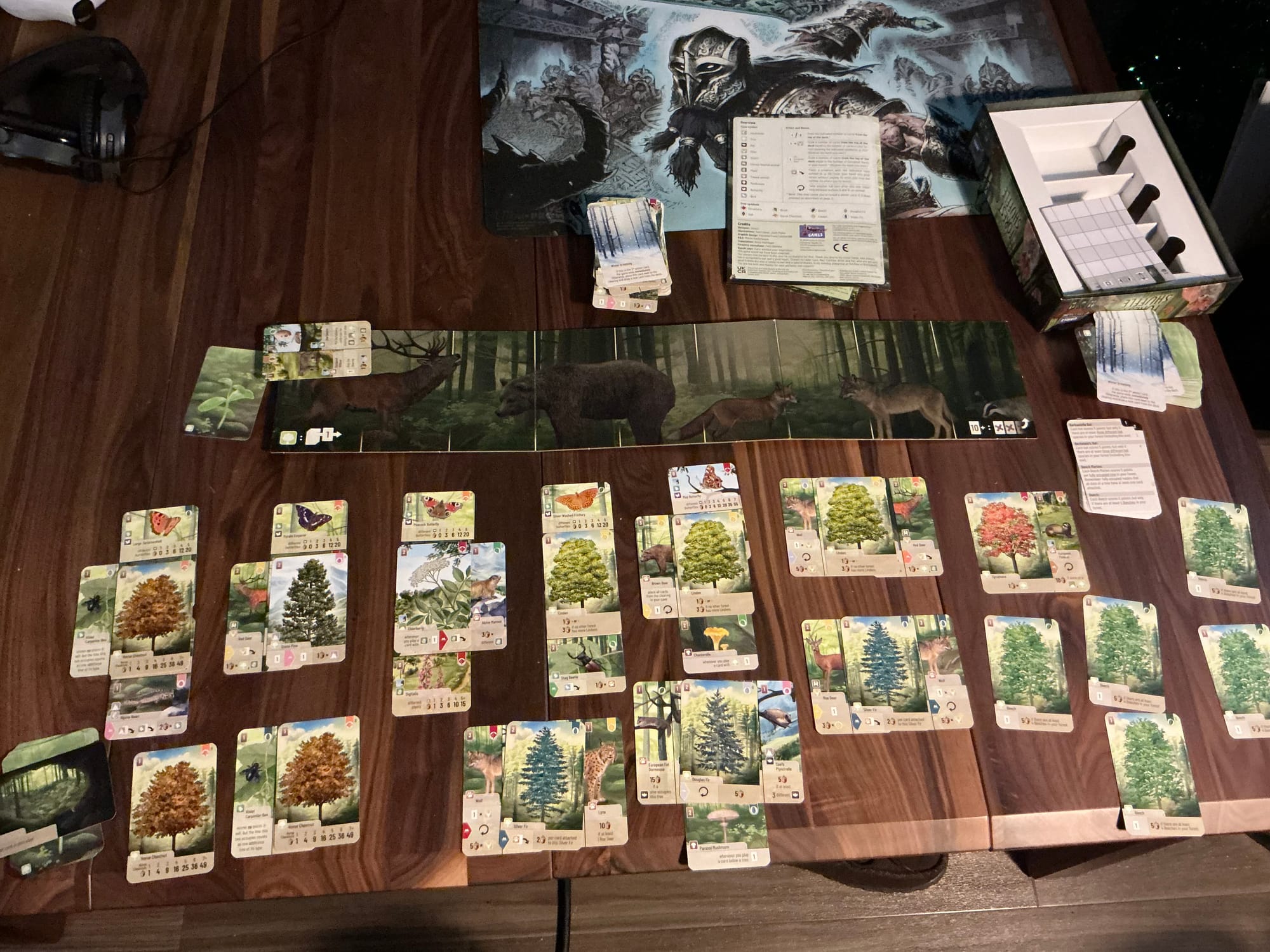 I mean, there’s technically no limit to how much you can build out your forest but eventually the deck of cards will run out and you’ll hit the ”Winter is Coming” card that warns you that the game will meet an abrupt end Soon™️. Because once the third Winter card is revealed the game ends immediately. These Winter cards get randomly organized in the lower third of the deck so you get a general sense of the approaching end but reaching it while gauging how many more turns you have left will give that push-your-luck feeling.