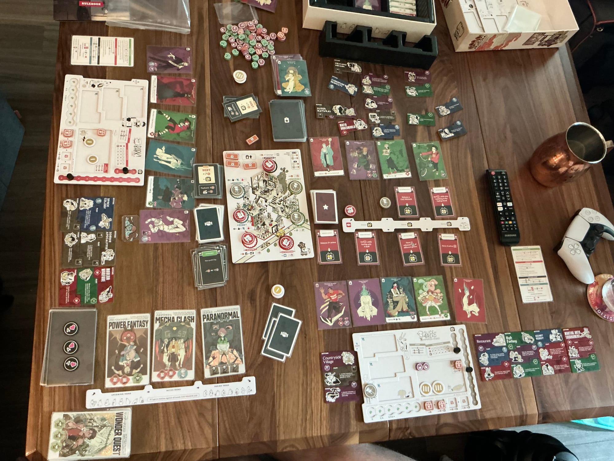 Of course, all of this is so that your studio can release an anime. To do so, you'll be collecting and arranging script parts that describe the anime you're producing. You'll also want to ensure you gather art for it too as it acts as a multiplier. On top of that, there's the trends and opportunities to consider when formulating what kind of anime to release. With only 4 rounds to do so, it's pretty important to try and release an anime each round.
