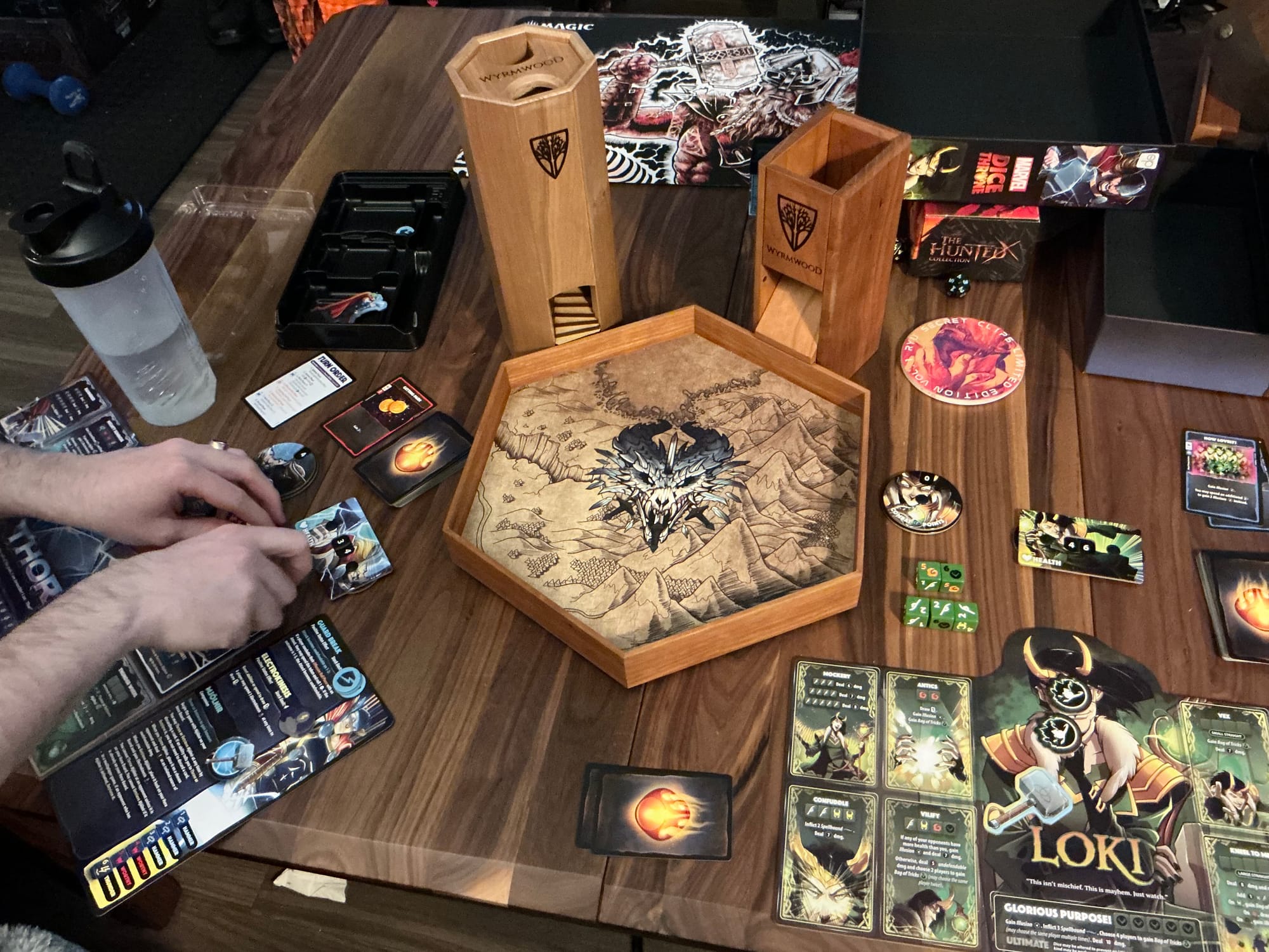 My husband had a wonderful time with this, immediately having fun with rolling dice and throwing Mjölnir around while I tried to avoid his bigger hits as Loki with their illusions. It's a great system: easy to teach and fun to play.
