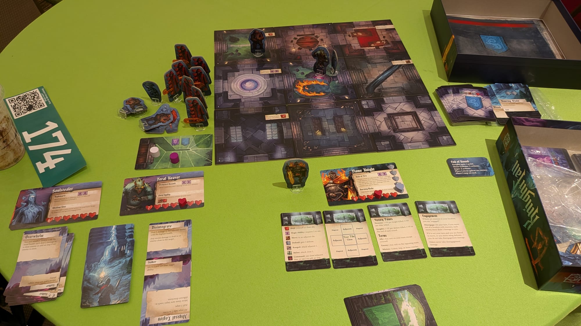 Then I got to try Knight Fall, a game about Knights vs Demons that has multiple ways to play: competitive teams, cooperative, or doing campaign scenarios. It’s from publisher Red Raven Games who have made the critically acclaimed Sleeping Gods and more, so due to the pedigree this game was on my radar. From what I remember hearing from news outlets this game is like a release or something of an earlier design I believe.