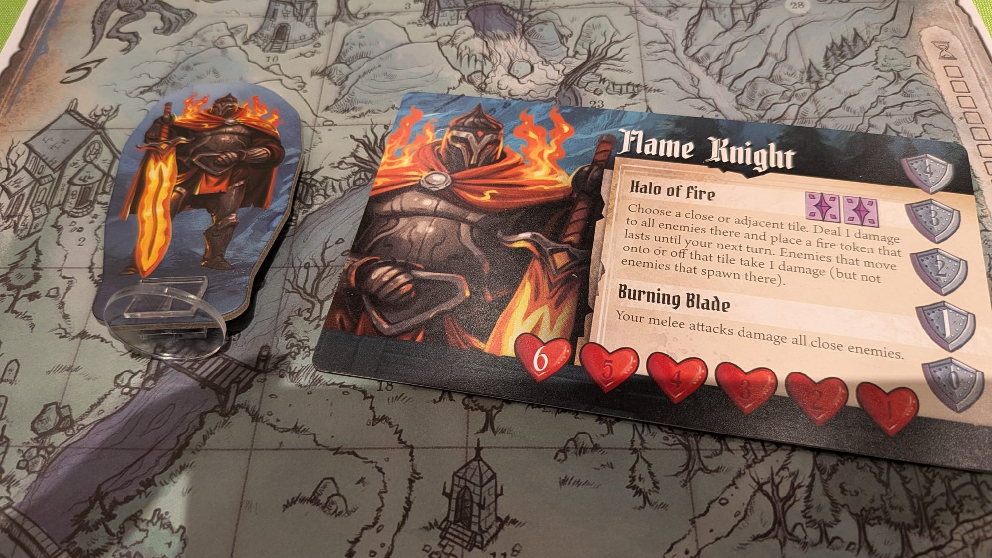 I really liked the character I played and I like the design of the knights. Each of the playable characters have their own abilities too which adds asymmetry. The card system is simple: you have a hand of cards and you can choose to use them in a multitude of ways, with situational primary abilities, general but useful secondary abilities, or as a basic wild action. As far as I could tell there isn’t really any interaction when its not your turn, you kind of just have to wait for the entire board state to resolve before you can do anything.