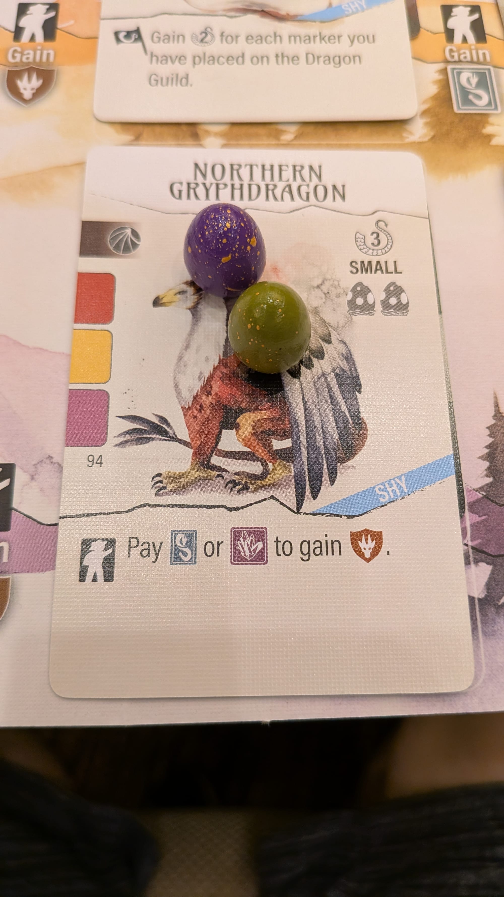 When the goals and everything were shown off I totally had a plan to go for those end of round goals. And yet hilariously as I took my turns I completely veered off course and mostly played off of what I was getting. In particular, my strategy shifted when I got the Northern Gryphdragon card which really let me accelerate around the Guild track for benefits.