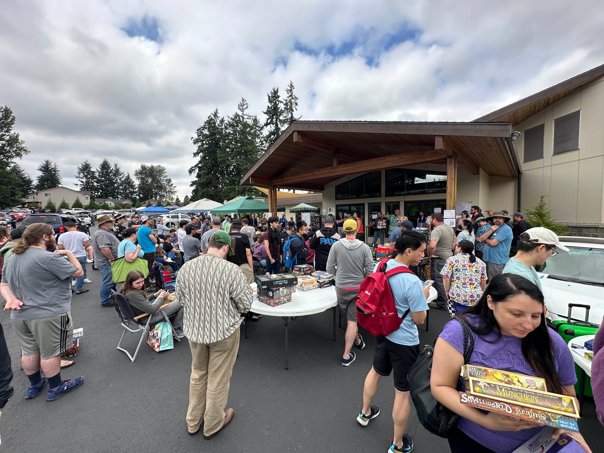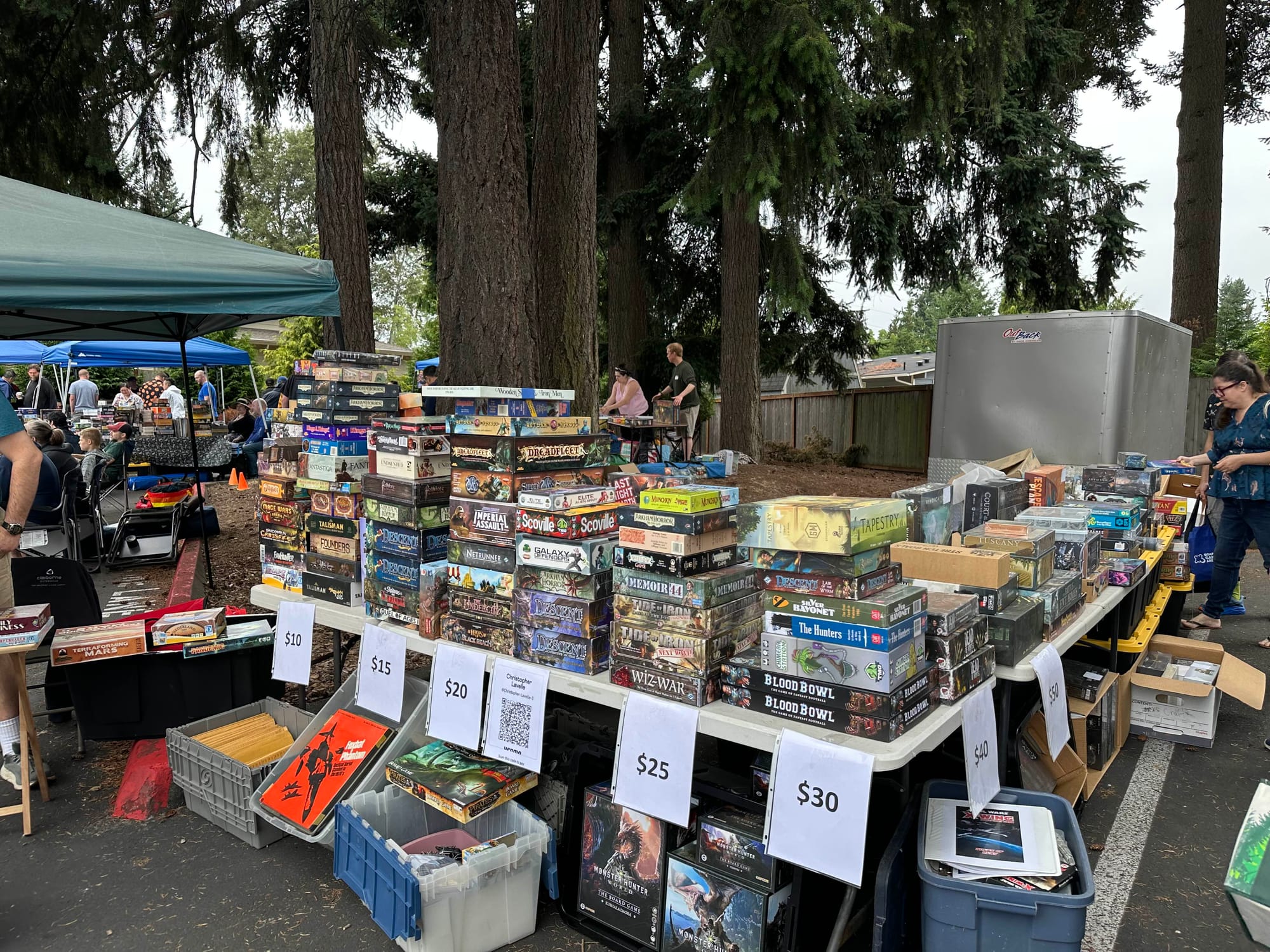 Setup wasn't as bad, finding a place to be set up was a little hard. I felt bad that people had to setup tables in the trees and dirt just because there really wasn't enough room. The difficult part was loading back up, I saw quite a lot of people packing up early since the auction was happening and it was the last event. I decided it wouldn't hurt to leave early too so I needed to do two treks to the other parking area. That was such a hassle to do on my own, with the cart overflowing with games and the worst was the heavy table, especially when my arms were still sore from workout that week.