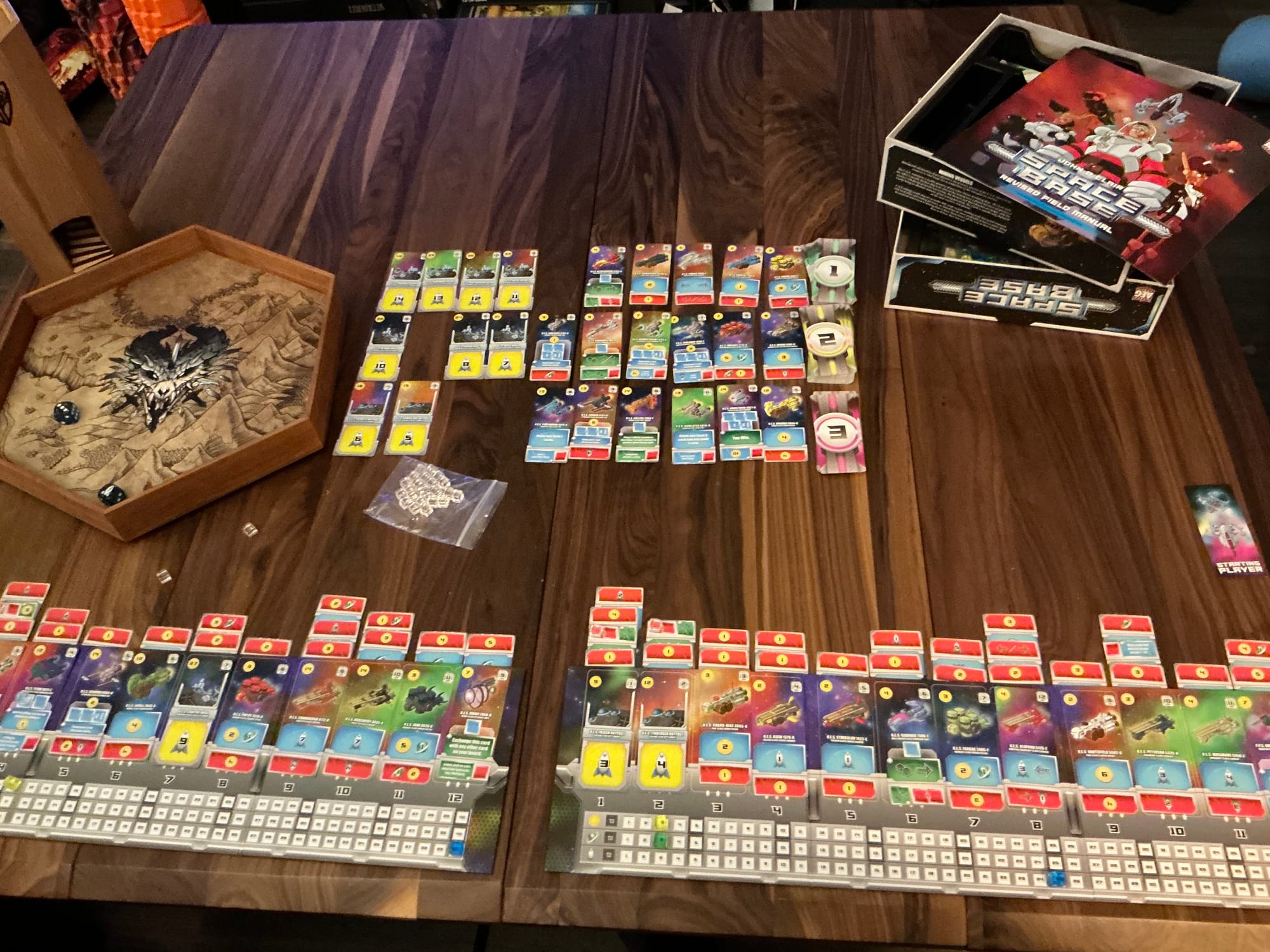 The recurring thing I kept hearing about Space Base is that it's basically Machi Koro but better. A part of me had some bais since Machi Koro was one of my early board game experiences and I played through an entire campaign of Machi Koro Legacy with friends. Just how much do I need a "Machi Koro"-like game? You would think that because I tend to enjoy John D. Clair's games that I'd be interested but I guess it never really got past the threshold for me to get. What ended up being a factor was my husband enjoying dice-based games and that I knew it should be simple and easy to play, so I ended up getting this on a whim.