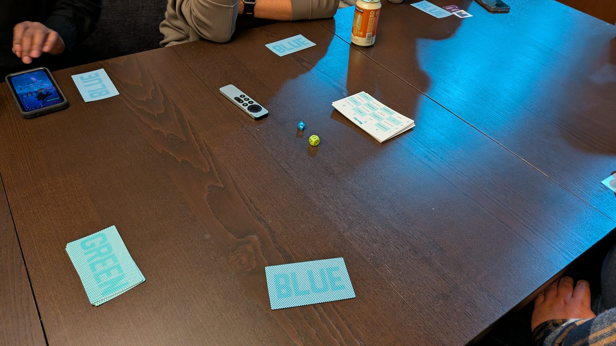 After everyone has given their word association, then there's a short round of deliberation amongst everyone to try and identify who the Chamelon is. Players then vote by pointing to who they think it is and whoever has the most must reveal their card. If it is the Chamelon, they get one final chance to win and that's by guessing what the target clue was. If they succeed or if someone not the Chamelon is voted then that's a win for the Chamelon, otherwise everyone else wins.