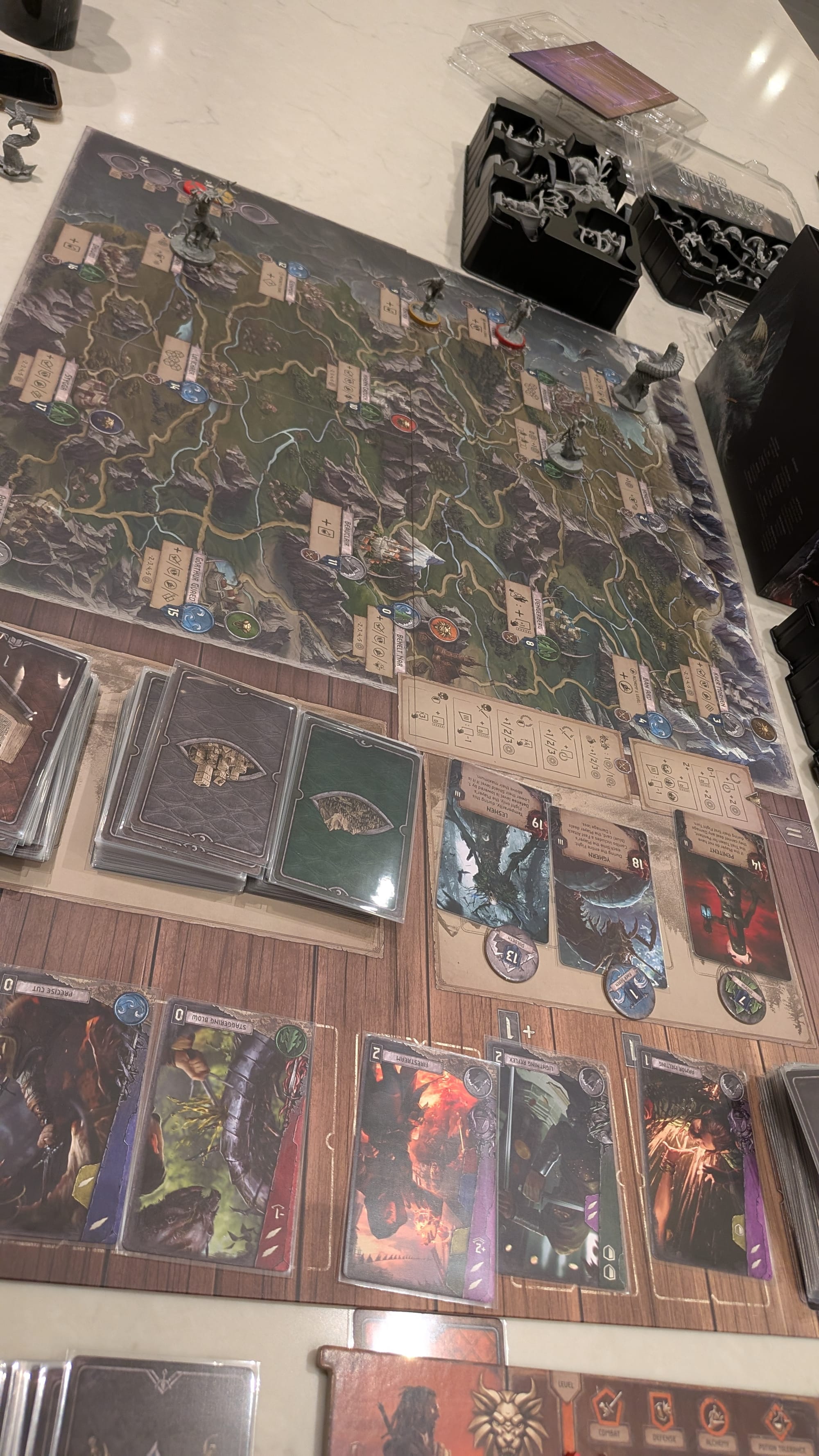 There were a plethora of expansions developed and produced as part of the crowdfunding campaign. Notably, the Mages one introduces 5 new playable characters that use entirely different cards and play mechanically a little different from the Witchers. With Wild Hunt it adds a full cooperative mode to the game, in case you want to work together against a common threat. There's plenty more that you can mix and match based on compatibility, but clearly the replayability and modularity is there and almost all of it can fit in the single big box solution.